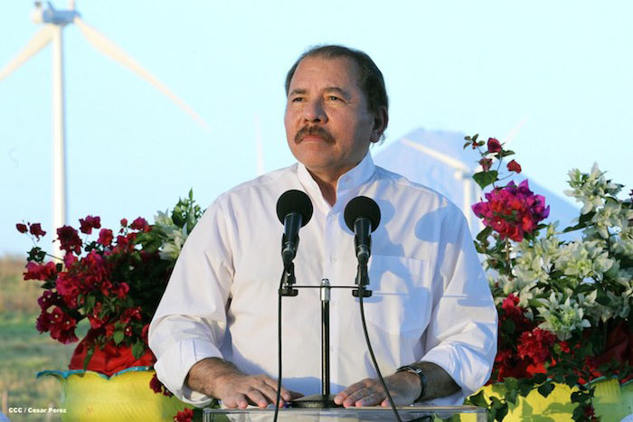Proyectos como este que hoy estamos aquí inaugurando, yo solo por televisión había visto estos aeromotores... ¡primera vez que los veo ya de pie! Y los había visto cuando los estaban desembarcando en Corinto, pero no es lo mismo verlos desembarcando que verlos puestos a estos gigantes molinos de viento.