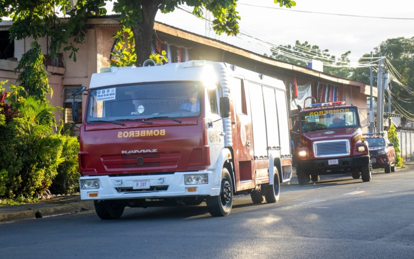 “Estamos desplazando un camión de bomberos con (capacidad para) 500 galones de agua, un camión cisterna con 2 mil galones de agua y son destinados a la estación número 232 ubicada en la Villa 15 de Julio, Somotillo y Chinandega. Nuestro gobierno, acercando los servicios de bomberos para atender de manera oportuna a las familias nicaragüenses, dispuso construir una nueva estación en ese sector”, señaló el comisionado mayor Ramón Landero, jefe de la DGB.