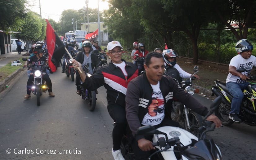 Montados en vehículos y motocicletas recorrieron las principales calles de este distrito como una forma de recordar el legado del fundador del Frente Sandinista de Liberación Nacional, quién fue profesor, bibliotecario, político, escritor y revolucionario.