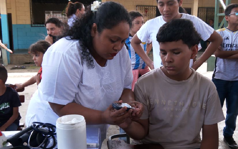 Una brigada médica visitó el Colegio Solidaridad, ubicado en el Distrito V, donde aplicó el protocolo inicial para detectar posibles indicios de diabetes en los estudiantes, a quienes se les practicó el examen de glucemia.