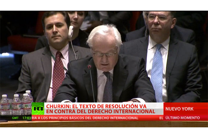 "La filosofía de los autores del proyecto contraviene uno de los principios básicos de la ley internacional, el principio de la igualdad de derechos y la libre determinación de los pueblos, consagrado en el primer artículo de la Carta de la ONU", explicó Churkin antes de la votación. Este principio también fue consagrado por la Declaración sobre los principios de derecho internacional referentes a las relaciones de amistad y a la cooperación entre los Estados aprobada por el Consejo de Seguridad en 1970, así como por una serie de otros documentos de la Asamblea General de la ONU y el Acta Final de Helsinki de 1975, recordó Churkin.
