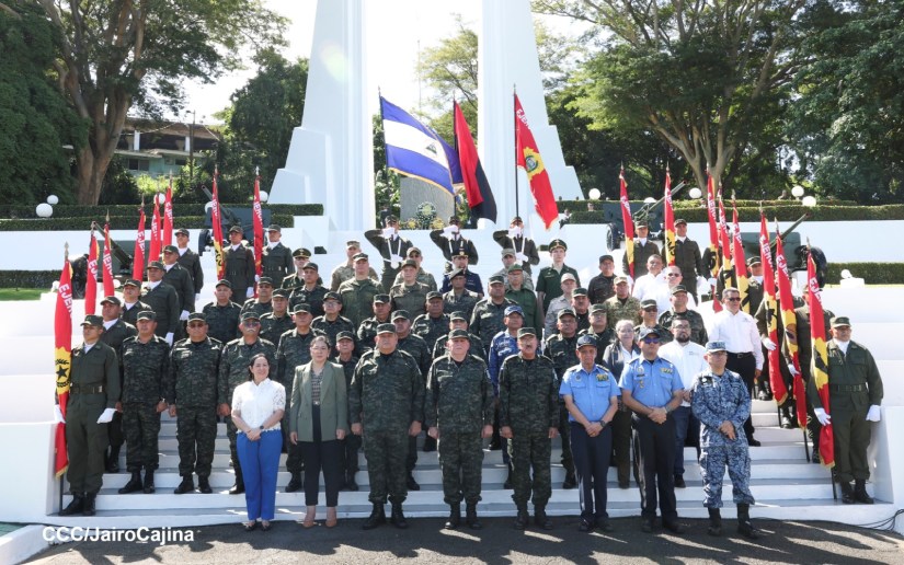 Por ello, este 27 de noviembre, el Ejército de Nicaragua. "En esta fecha histórica en la que honramos a nuestros hermanos caídos, en nombre de la Comandancia General hacemos un merecido reconocimiento a los miembros de nuestra institución que con patriotismos, dignidad, firmeza, disciplina y de lealtad sin límite a Nicaragua, han cumplido las misiones y tareas, en beneficio de todos los nicaragüenses y, de manera especial, a los 1 mil 507 hermanos de armas, entre ellas, 195 compañeras, que con orgullo representan a la mujer nicaragüense y, que por su destacado desempeño, hicieron méritos para recibir condecoraciones", reconoció el jefe de la Dirección de Educación Patriótica del Ejército de Nicaragua.