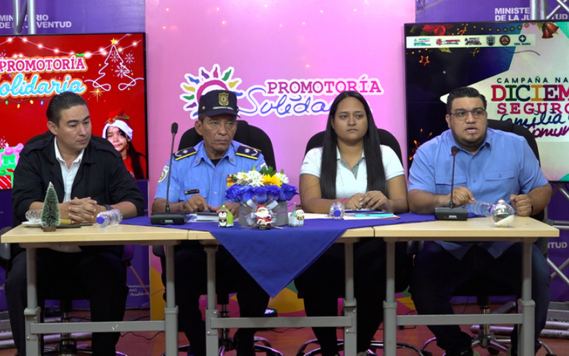 La Promotoría Solidaria, en conjunto con diferentes instituciones de gobierno, Bomberos Unidos, Cruz Blanca, Ministerio de la Familia, Policía Nacional, presentó la Campaña Nacional “Diciembre Seguro en Familia y Comunidad”, enfocada en el resguardo de la vida y la seguridad del pueblo nicaragüense durante el desarrollo de las festividades de fin de año.