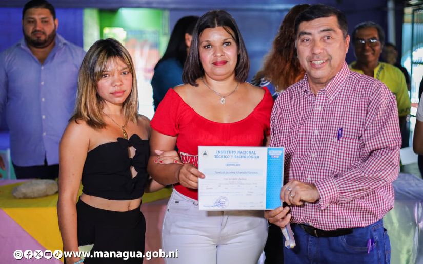 La Alcaldía de Managua y el Tecnológico Nacional (Inatec) han unido esfuerzos para entregar la certificación a 26 jóvenes y adultos que finalizaron con éxito los cursos de Barbería y Mecánica de Motocicletas.