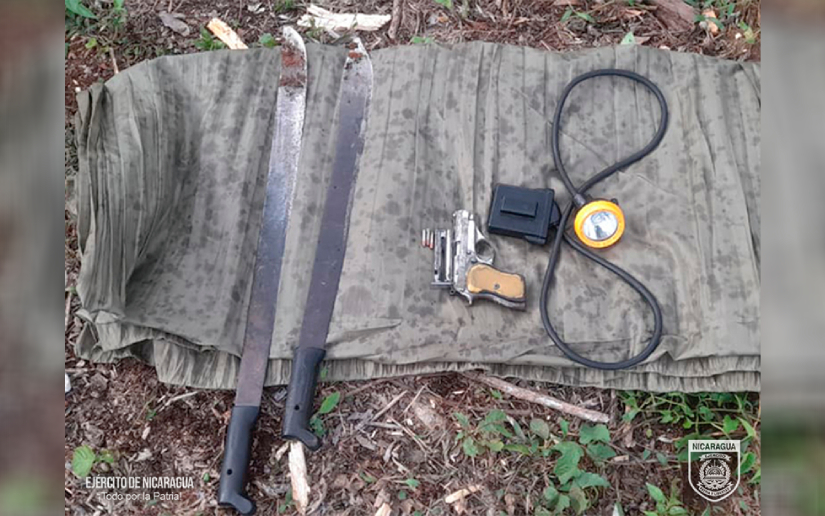 · En el sector de San Miguel de La Esperanza Nº 2, 11 kilómetros al sur del Puesto Militar de Silibila, municipio de Prinzapolka, se retuvo al ciudadano nicaragüense Eylin Antonio Estrada de 21 años de edad, a quien se le ocupó 1 motosierra, 1 motoguadaña, 1 batería de panel solar, 1 inversor, 1 celular, 1 montura para equino y sus accesorios, medios que pretendían ser empleados en labores de tala ilegal de árboles.
