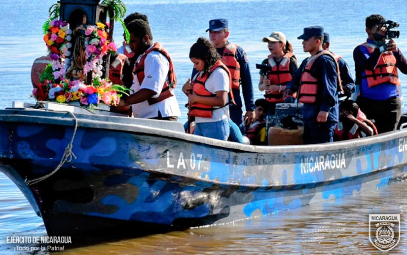 El Ejército de Nicaragua consecuente con el lema de que “Somos el Pueblo mismo uniformado trabajando en su propio beneficio”, el 7 de diciembre de 2025, a través del Distrito Naval Caribe, en coordinación con la alcaldía del municipio de Bluefields, Región Autónoma de la Costa Caribe Sur, brindó protección y seguridad a la tradicional purísima acuática, dedicada a la Inmaculada Concepción de María, realizando recorrido desde el malecón hacia el muelle municipal, contando con la participación de 10 embarcaciones.