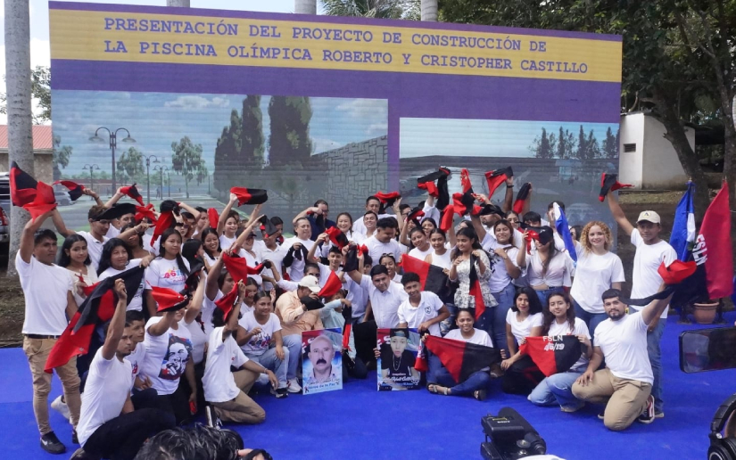 En su comunicación, la Copresidenta de la República destacó "la inauguración del sitio, la presentación del sitio donde se estará construyendo, está construyendo, ya empezamos, la piscina olímpica del municipio de Jinotepe, que llevará el nombre de Roberto, de Cristopher".