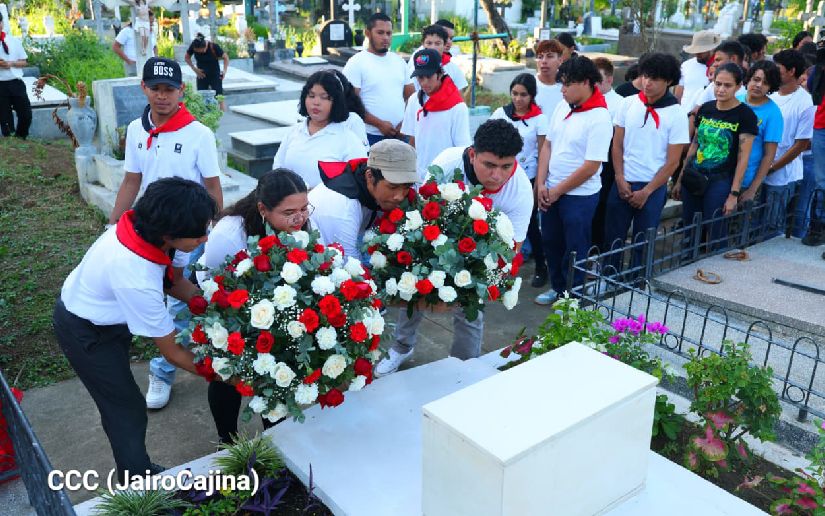 A 75 años del natalicio del Comandante Camilo Ortega, Apóstol de la Unidad Sandinista, la juventud nicaragüense depositó ofrendas florales en el mausoleo en su honor ubicado en el Cementerio General de Managua.