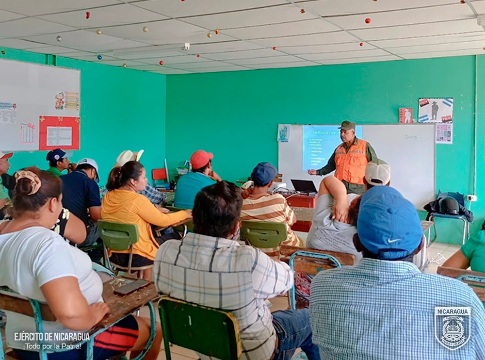 El Ejército de Nicaragua consecuente con el lema de que “Somos el Pueblo mismo uniformado trabajando en su propio beneficio”, el 19 y el 24 de febrero de 2026, a través del Estado Mayor de la Defensa Civil y el 1 Comando Militar Regional, en coordinación con el Ministerio del Ambiente y los Recursos Naturales (MARENA), el Ministerio Agropecuario (MAG) y autoridades municipales, participó en capacitación sobre “Prevención de Incendios Forestales, Agropecuarios y de Malezas”, impartida a 43 productores de las comunidades de San Juan de Tranqueras y Parcila, municipio de San Juan de Limay, departamento de Estelí, con el objetivo de fortalecer los conocimientos en las medidas de prevención de incendios, asimismo, promover el cuido y la preservación de los recursos naturales a través de buenas prácticas productivas.