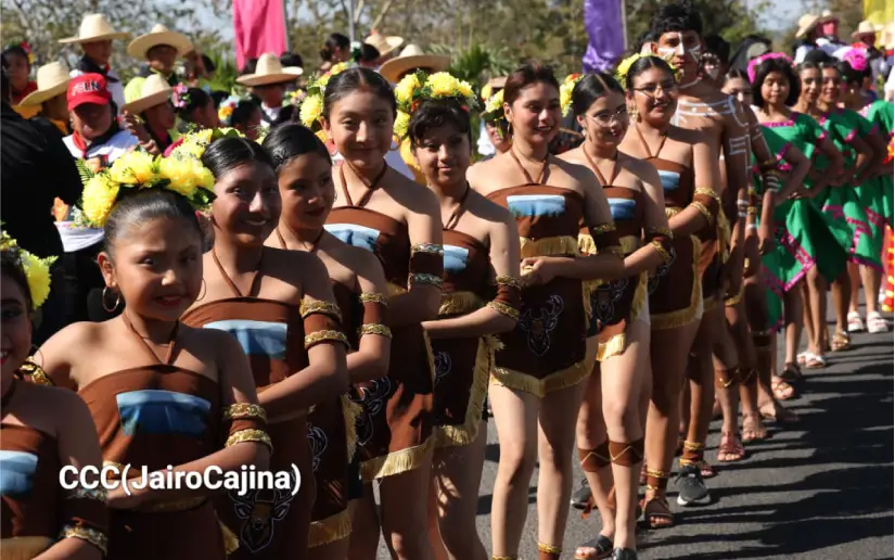 Carrozas, bailarines con trajes típicos, filarmónicos, sones y la bandera roja y negra, símbolo de la lucha antiimperialista del General Augusto C. Sandino, recorrieron varias cuadras hasta llegar al tiangue Monimbó.