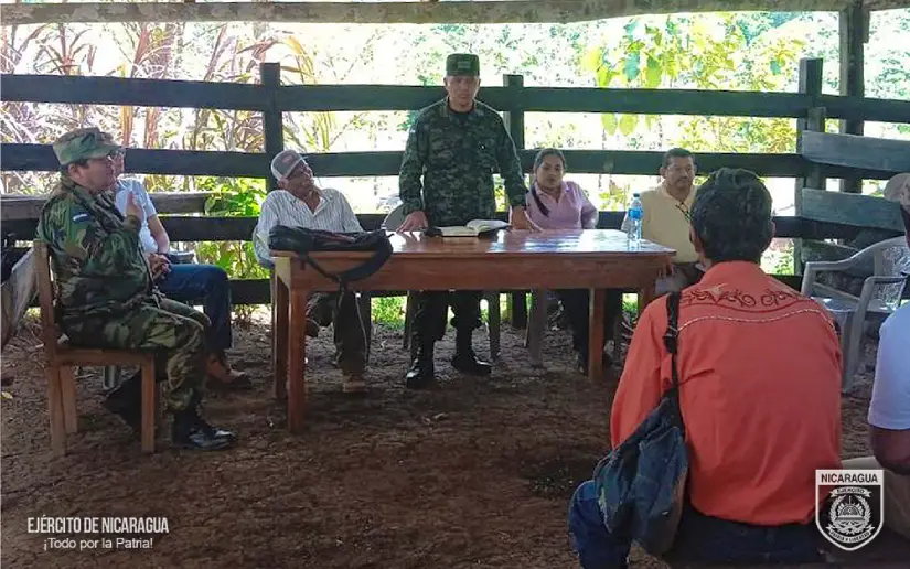 El Ejército de Nicaragua consecuente con el lema de que “Somos el Pueblo mismo uniformado trabajando en su propio beneficio”, el 13 de marzo de 2026, a través del jefe del 5 Comando Militar Regional, Coronel Inf. DEM Sergio Amílcar Rodríguez Gutiérrez, participó en reunión con autoridades, productores, comerciantes y cooperativas del municipio de Nueva Guinea, Región Autónoma de la Costa Caribe Sur, con el objetivo de evaluar y escuchar sus planteamientos relacionados al Plan de Protección y Seguridad a la Cosecha Cafetalera, Ciclo Productivo 2025-2026, el fortalecimiento del Plan Permanente de Seguridad en el Campo y la Lucha Contra el Abigeato.