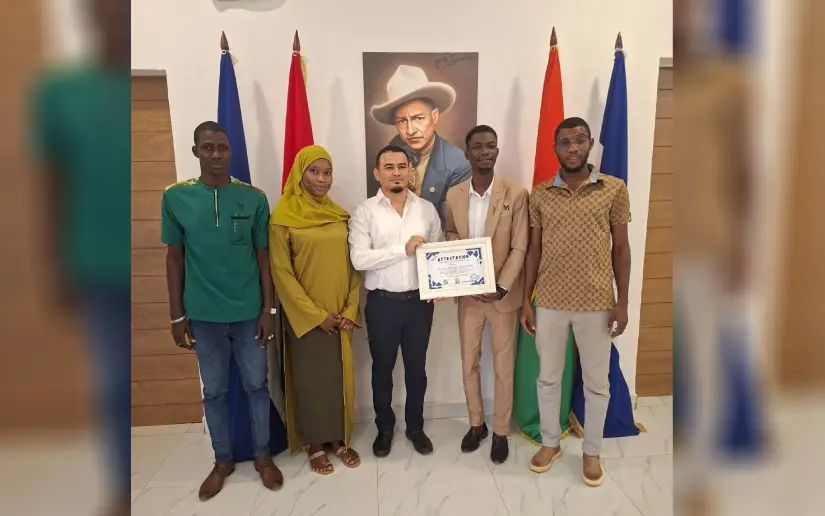 Hoy Jueves 19 de Marzo, la Embajada de Nicaragua en Burkina Faso recibió la visita de jóvenes universitarios dirigida por el Compañero Abdoul Kader Lawal, Coordinador Nacional de la Unión General de Estudiantes de Burkina Faso, con el objetivo de intercambiar experiencias sobre las Universidades, el papel protagónico de la Juventud Sandinista, sus movimientos, aportes en los Avances, Logros, Triunfos y Transformaciones de nuestra Revolución en un modelo de Bien Común, Paz y Trabajo para todas y todos y estrechar Lazos de Amistad, Solidaridad y Cooperación que unen a nuestros Pueblos, Gobiernos y los Movimientos Juveniles de África y América Latina.