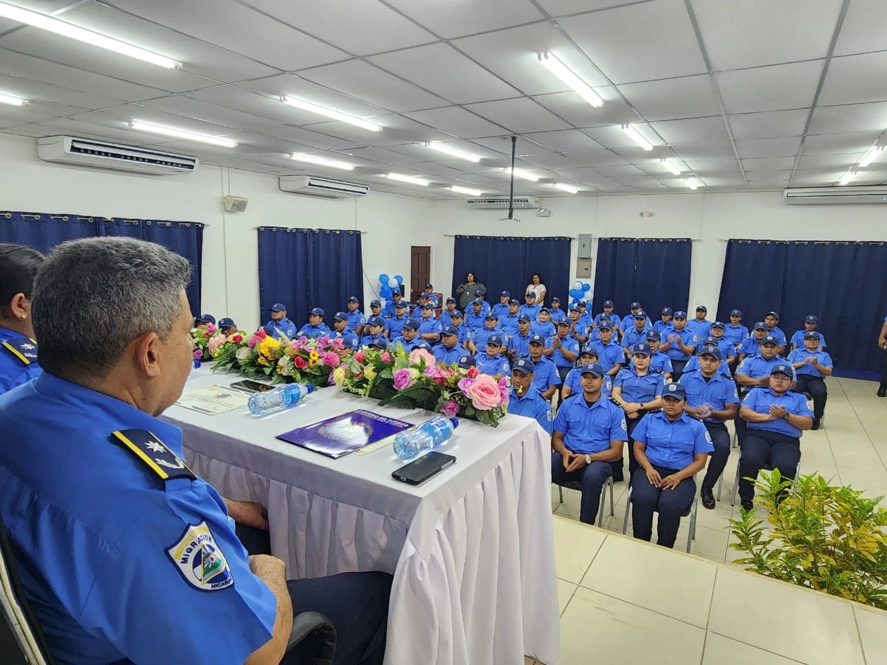 El oficial Carlos Munguía de control migratorio agradeció primeramente a Dios y al Gobierno Sandinista “porque siempre está preocupado que seamos unos oficiales integrales para mejorar la atención al pueblo nicaragüense, así como a las personas de otras nacionalidades".