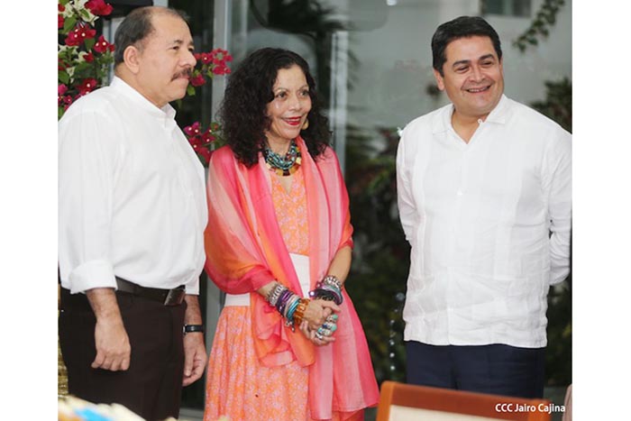 Muchas gracias, Presidente Daniel Ortega, por recibirnos aquí en su Tierra, de igual manera a doña Rosario, a tod@s l@s amig@s. Al Pueblo nicaragüense un saludo especial del Hermano Pueblo de Honduras.