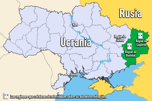 El referendo de autodeterminación que celebran este domingo las regiones de Donetsk y Lugansk incluye una única pregunta sobre el respaldo o no a la independencia de las repúblicas populares homónimas, conformadas como nuevas entidades en el este de Ucrania.