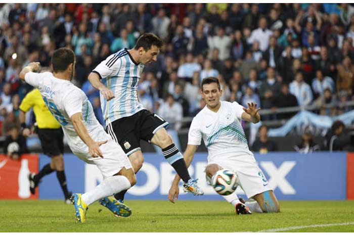 Después de un par de jugadas sin peligro para el arco rival, Messi trianguló con Di María y Aguero antes de anotar con un toque suave ante la desesperada salida del arquero esloveno.