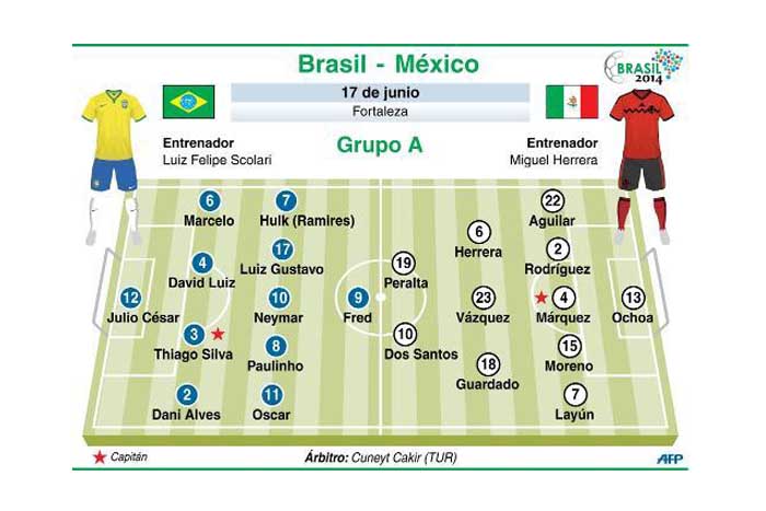 Ambos equipos tiene tres puntos en la clasificación del grupo A con Brasil liderando la llave por diferencia de goles. La Canarinha venció a Croacia (3-1), en el partido inaugural, y México a Camerún (1-0).
