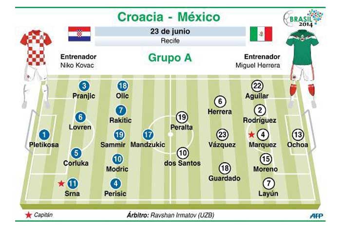 Dando por descontado que Brasil vencerá -y seguramente goleará al alicaído Camerún en su último partido en la llave-, a los croatas, que disputan su cuarto Mundial tras Francia-1998, Corea del Sur y Japón-2002 y Alemania-2006, no les queda otra opción que vencer al sólido equipo azteca.