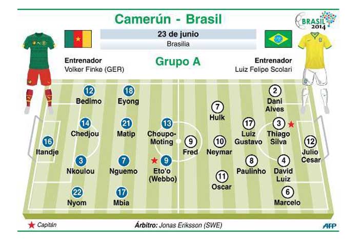Camerún, que sólo suma derrotas y llegó al Mundial en medio de una profunda crisis interna, quiere despedirse por la puerta grande. Y que mejor que darle un batacazo a Brasil.