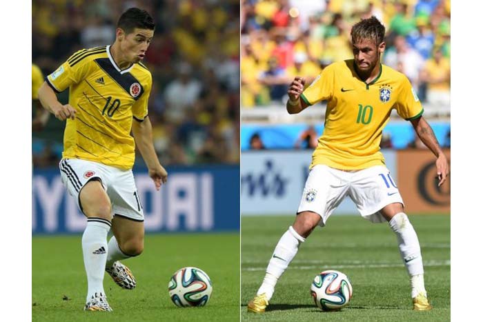 La gran revelación del Mundial 2014, Colombia, pone a prueba la estabilidad del anfitrión y obligado favorito, Brasil, que se miden por primera vez en la historia de esta competición en busca de las semifinales.