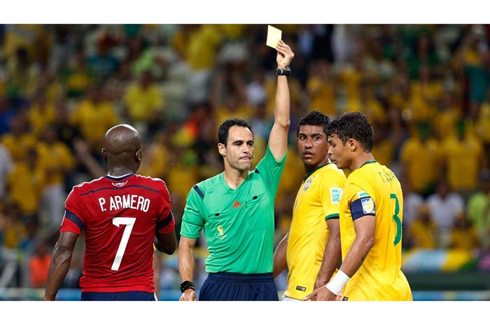 El defensor y capitán del seleccionado de Brasil, Thiago Silva, se perderá la semifinal del Mundial 2014 ante Alemania, ya que recibió su segunda tarjeta amarilla en el duelo de hoy ante Colombia (2-1) por los cuartos de final.