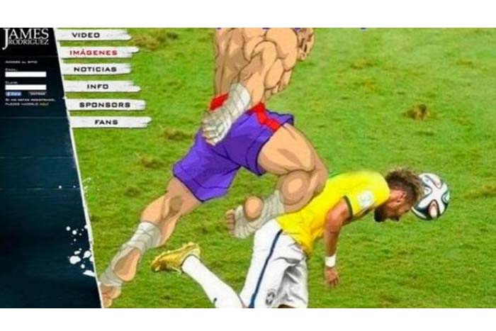 La página del jugador de la selección colombiana, James Rodríguez, fue víctima este martes del ataque cibernético que cambió la apariencia visual por un meme que representa la jugada en la que Neymar se quedó afuera del Mundial Brasil 2014.
