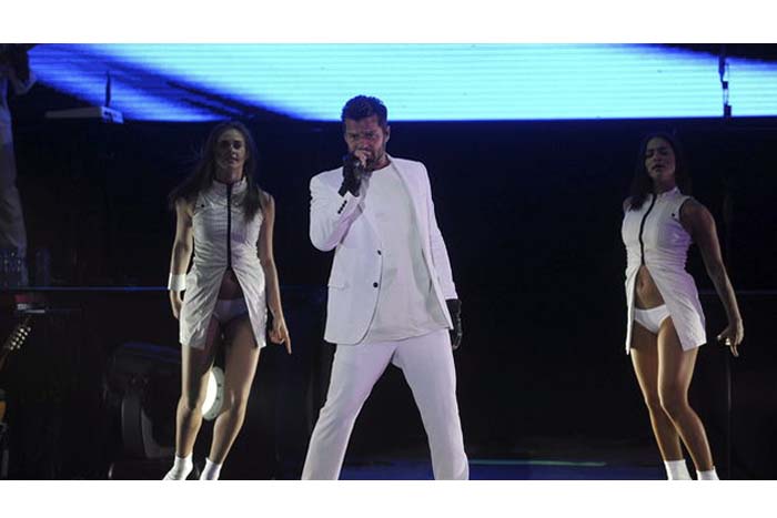 El cantante puertorriqueño Ricky Martin ha deslumbrado en el concierto que ha ofrecido esta noche en Marbella, no sólo por el vestuario blanco que ha lucido casi durante toda la velada, sino también por su sonrisa de anuncio de dentífrico, que relucía en el rostro bronceado.