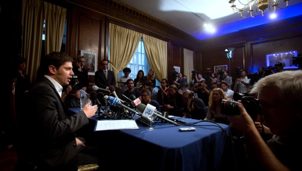"Ofrecimos que entren al canje de 2007 y 2010, con lo que obtendrían una ganancia del 300 por ciento, pero no fue aceptada esa oferta porque (los fondos especulativos) quieren más", precisó Kicillof durante una conferencia de prensa en el Consulado argentino en Nueva York, noreste de Estados Unidos, luego de una extensa reunión con el mediador designado por el juez estadounidense Thomas Griesa, Daniel Pollack, y representantes de los fondos.