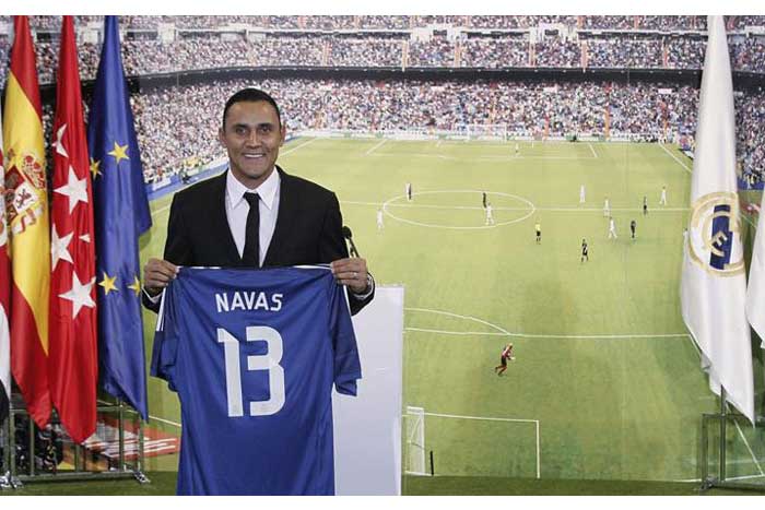 Navas, que pasó reconocimiento médico a primera hora, saltó al césped entre una sonora ovación y fue jaleado por los presentes, varios de los cuales portaban banderas de Costa Rica, país de origen del jugador. Además, durante el acto, se pudieron escuchar aislados cánticos en referencia a Iker Casillas y a Diego López, los otros dos porteros de la primera plantilla.