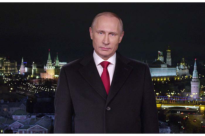 Como manda la tradición, el mandatario ruso felicita al pueblo en un mensaje televisivo minutos antes de la llegada del nuevo año. El mensaje es retransmitido por varios canales de televisión y emisoras de radio en todo el país.