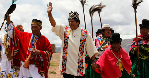 El primer presidente indígena de Bolivia, desde la parte superior de la pirámide de Akapana, hará ofrendas a la Pachamama o Madre Tierra a base de dulces, alcohol y hojas de coca.