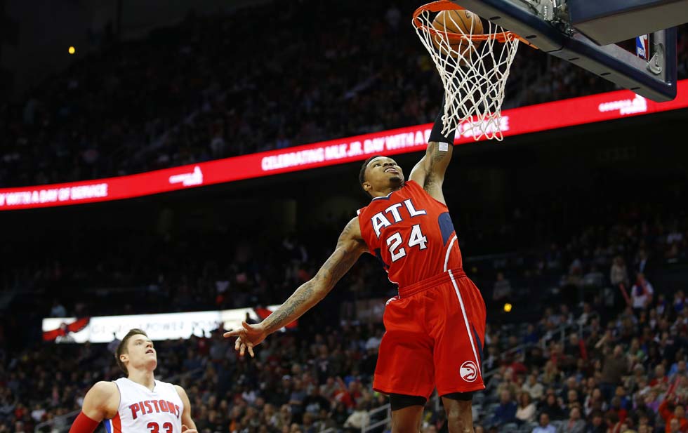Los Hawks de Atlanta ganaron su 13er encuentro seguido y se colocaron a uno del récord de la franquicia, gracias a Mike Scott y Paul Millsap, quienes anotaron el lunes 20 puntos cada uno en el triunfo por 93-82 sobre los Pistons de Detroit.