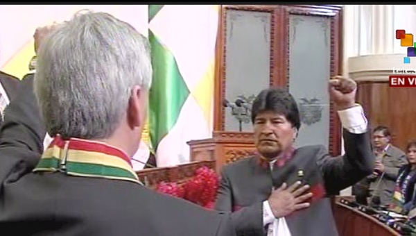 Incluso, al término de su gestión, en 2020, el líder indígena y cocalero, superará a Víctor Paz Estensoro como el inquilino con más tiempo en el Palacio Quemado, aunque para entonces la sede del Ejecutivo será la Nueva Casa Grande del Pueblo, cuya construcción terminará en 2016. Durante el acto de investidura de Morales, García Linera destacó la concentración de gobiernos progresistas y revolucionarios en América Latina, en contraste con lo que ocurre en otros lugares del mundo, donde aún campea por su respeto el neoliberalismo.