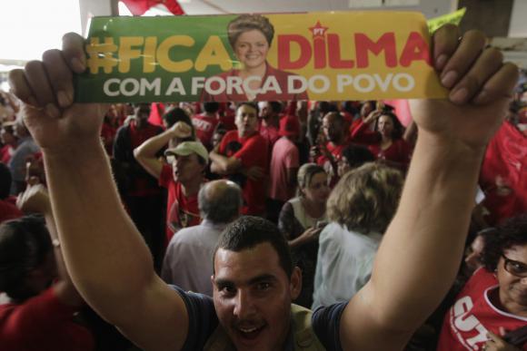 "No podemos vacilar. Hay en marcha una onda golpista y conservadora, interesada en aprovechar este momento (de dificultades económicas) para adueñarse del poder", alertó por su parte el presidente de la Central de Trabajadores de Brasil, Adilson Araújo.