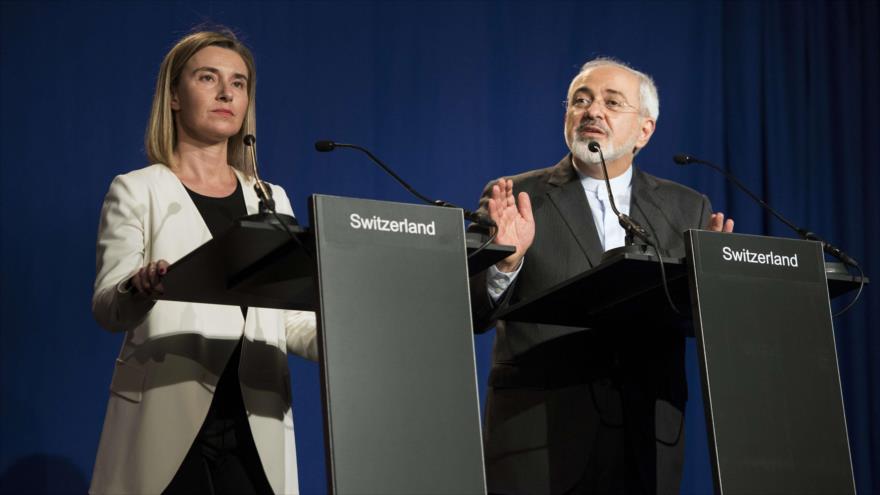 La alta representante de Política Exterior de la Unión Europea, Federica Mogherini, y el ministro de Exteriores de Irán, Mohamad Javad Zarif, han anunciado en rueda de prensa este jueves un acuerdo por el que Irán se compromete a la utilización civil de las instalaciones nucleares iraníes a cambio del levantamiento de las sanciones impuestas por Estados Unidos y sus aliados.