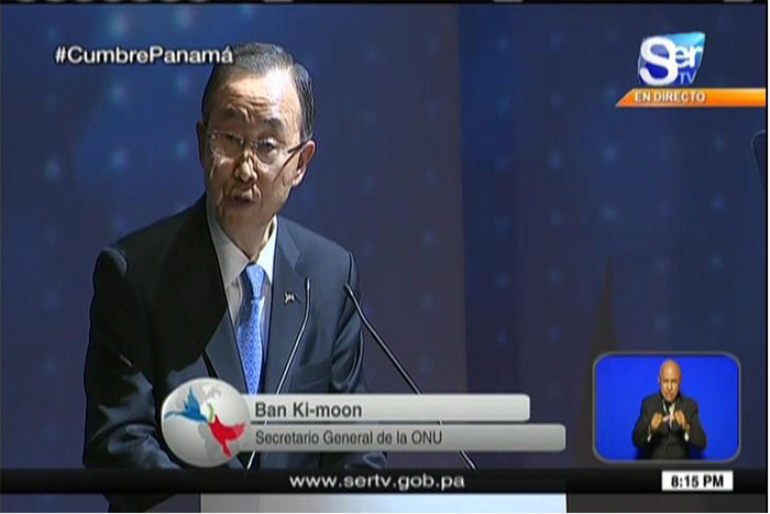 El secretario general de la Organización de las Naciones Unidas, Ban Ki Moon inició su discurso en la apertura de la Cumbre de Las Américas saludando a todos los presentes, aseguró que es un honor participar en el evento.