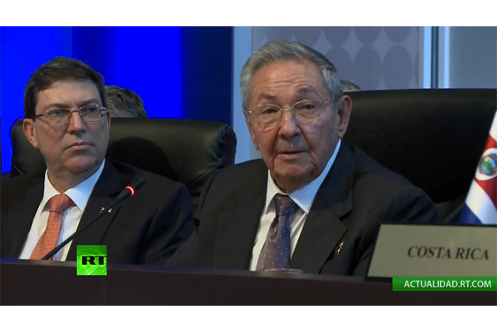 Raúl manifestó hoy su respaldo a Venezuela, al abogar por la derogación de la orden ejecutiva del mandatario, Barack Obama, que califica injustamente a la nación suramericana de amenaza para la seguridad nacional estadounidense.