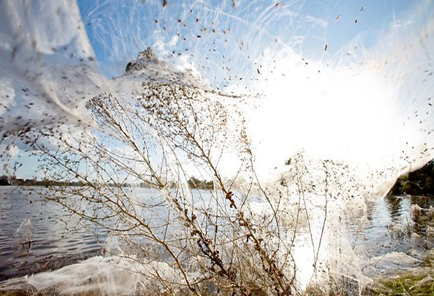 Un sistema similar es utilizado para escapar de fuertes lluvias e inundaciones. Lo último sucedió en la ciudad australiana de Wagga Wagga que apareció cubierta de seda de araña en 2012 durante una inundación.