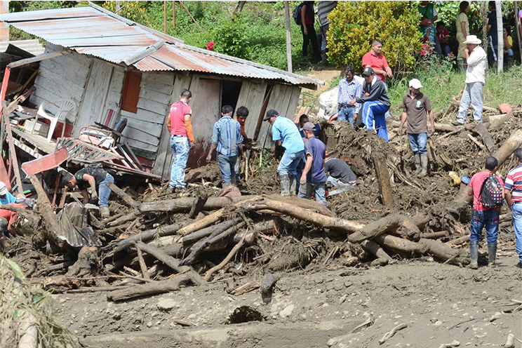El deslave se produjo al desbordarse la quebrada Liboriana, que atraviesa el municipio de Salgar debido a fuertes lluvias registradas en los últimos días. Las avalanchas de piedra y lodo arrasaron viviendas, puentes y las vías de la región.