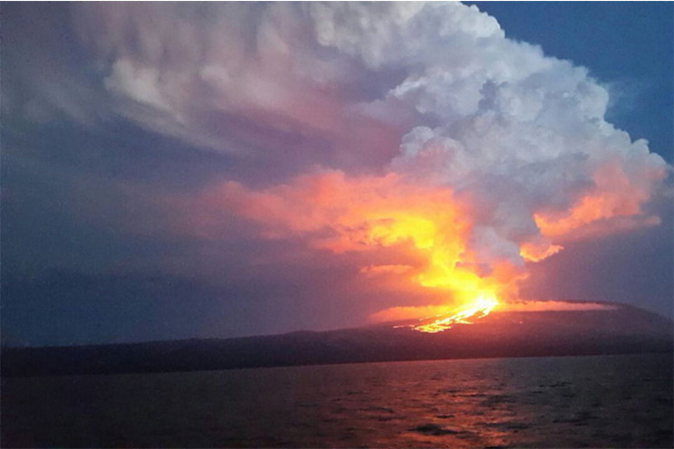Apenas iniciada la actividad, el coloso expulsó flujos de lava que descendían en dirección al mar y columnas de ceniza, que por el viento podrían pasar sobre la población de Puerto Villamil, en el sureste de la isla, agregó la información.