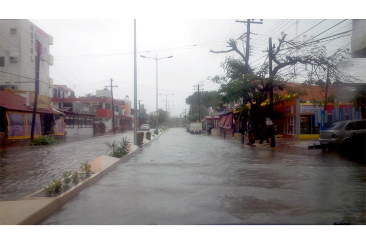El sistema de baja presión localizado en el mar Caribe, que provoca la onda tropical número cinco, y que tiene 60 por ciento de posibilidades de convertirse en ciclón tropical durante las próximas horas, provoca severas inundaciones en todo el estado de Quintana Roo, México, de acuerdo con la Comisión Nacional del Agua (Conagua).