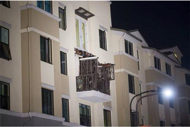 Los agentes recibieron una llamada que avisaba sobre el incidente, poco antes de la 1 de la madrugada del martes. Cuando los oficiales llegaron al lugar, encontraron destrozado el balcón del cuarto piso del edificio en Kittredge Street.