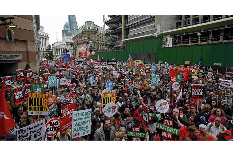 Convocada por la Asamblea Popular Anti Austeridad, un colectivo de sindicalistas, organizaciones cívicas y grupos comunitarios, es la primera manifestación masiva desde la inesperada victoria electoral del Partido Conservador que dirige el primer ministro David Cameron.