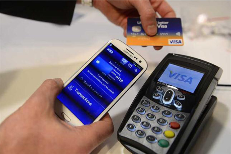 Los usuarios vinculan una tarjeta de crédito o una cuenta bancaria a su celular. El teléfono se comunica de manera inalámbrica, y para que el usuario autorice el pago debe presionar el sensor de huellas dactilares del teléfono.
