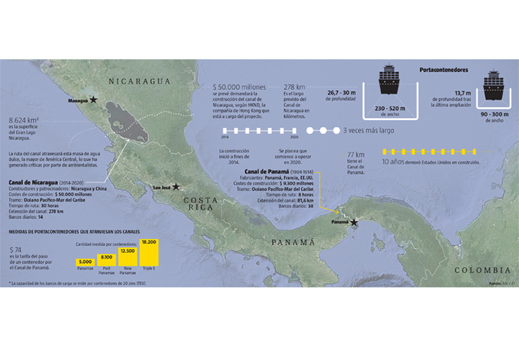 “Seguramente buques de menor calado sacarán la carga desde Ecuador y la transbordarán en el algún punto del Pacífico hacia buques de mayor capacidad. Los barcos que soporta el Canal de Nicaragua casi duplican la capacidad de carga de los buques. Mientras que en el canal de Panamá soporta embarcaciones de hasta 13 mil TEU (Twenty-foot equivalent unit), en su ampliación, el de Nicaragua soportará buques que transportan hasta 25 mil TEU, lo que abarata los costos”, indica.