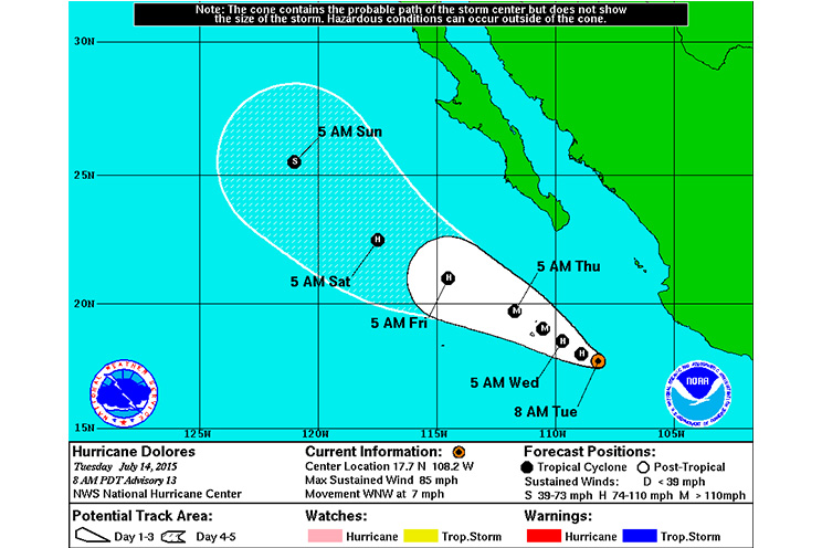 Dolores es el cuarto fenómeno de la temporada de huracanes en el Océano Pacífico, donde antes ser formaron Andrés, Blanca y Carlos.