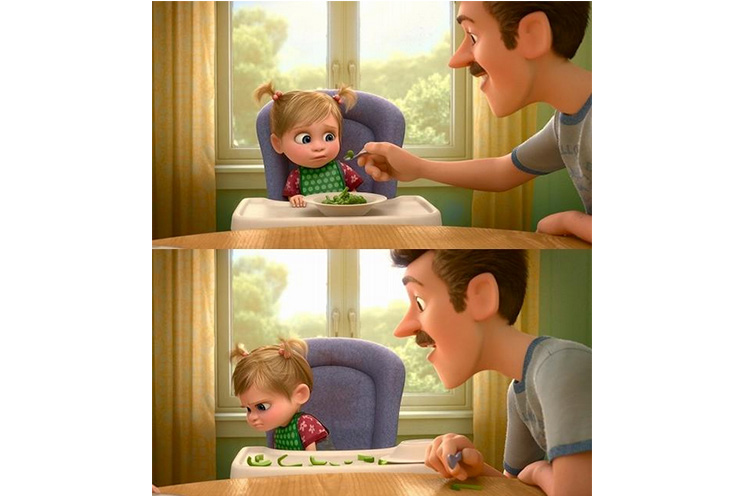 “Inside Out” (“Intensamente”), la más reciente película de la compañía de animación Pixar, contiene una escena en la que Riley, la protagonista del film, se rehúsa a comer unos brócolis para la cena.