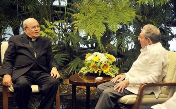 El presidente cubano, Raúl Castro, dialogó en un ambiente cordial con el cardenal y arzobispo de La Habana, Jaime Ortega, sobre los preparativos para la visita a Cuba del Papa Francisco en septiembre próximo, se anunció hoy.