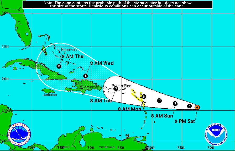“Danny” se mueve hacia el oeste-noroeste a una velocidad de 17 kilómetros por hora.