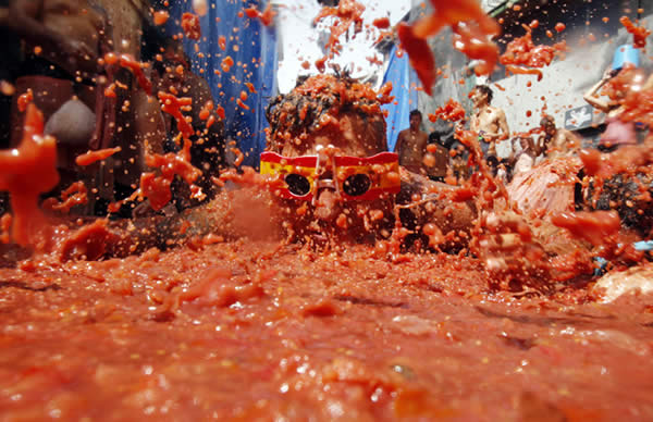 Miles de turistas -británicos, japoneses, indios, australianos, entre otros- llegaron a esta localidad de 9.000 habitantes, a 40 km de Valencia, decididos a no perderse nada de la guerra de tomates nacida en 1945 tras una enfurecida pelea entre jóvenes en un mercado.